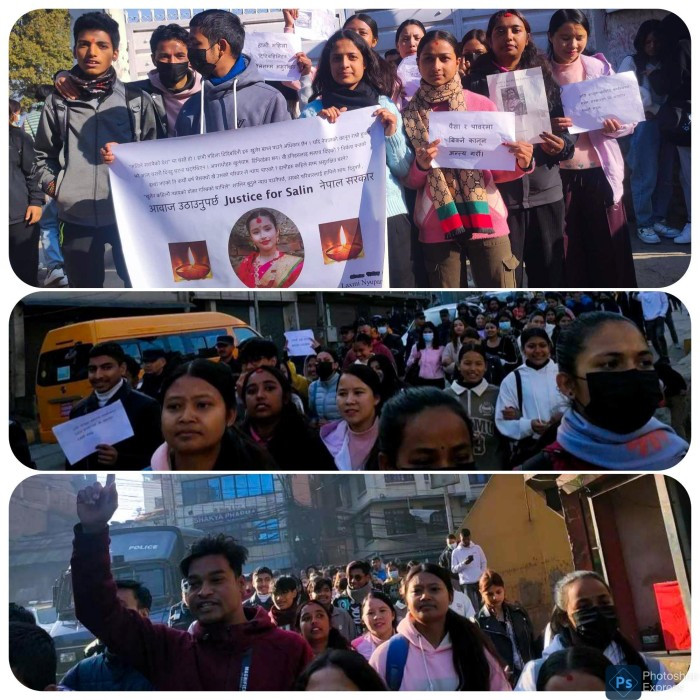 शालिन पोख्रेललाई न्याय माग्दै सरस्वती बहुमुखी क्याम्पसद्वारा प्रदर्शन