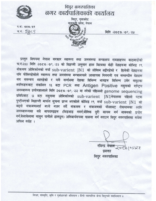 विदुर नगरपालिकाको अनुरोध !