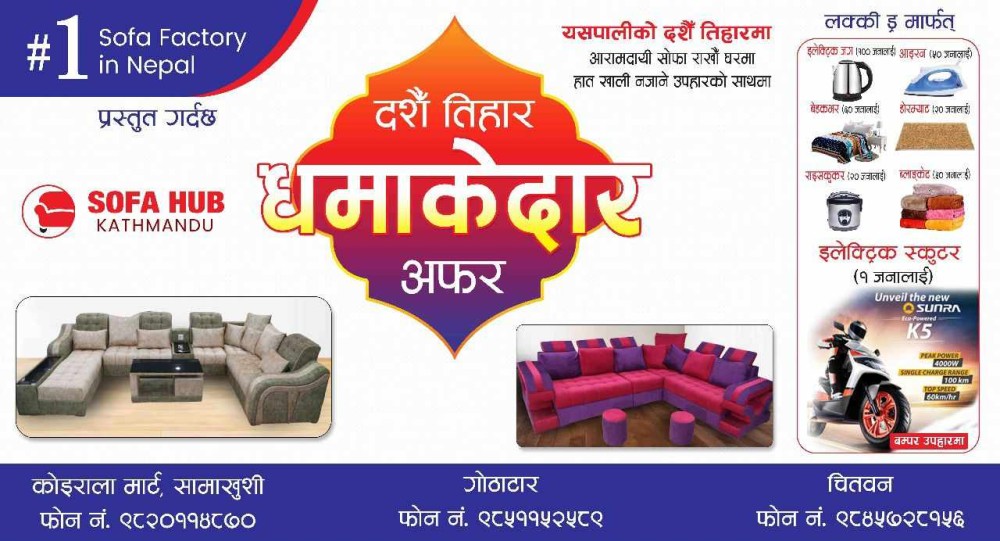 सोफा हब काठमाडौं को दशैँ अफर : सोफा किन्दा स्कुटर उपहार !