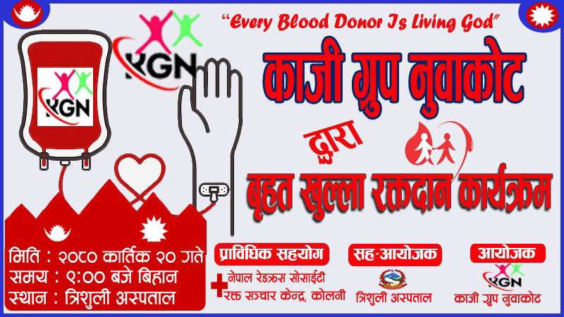 काजी ग्रुप नुवाकोटले भोलि रक्तदान गर्दै