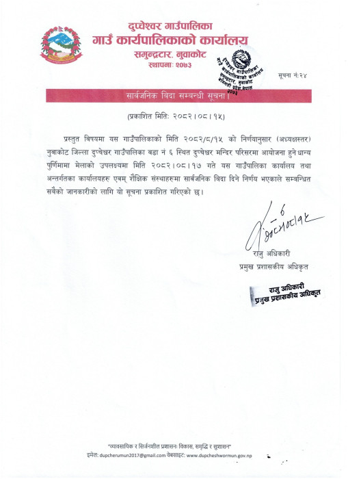दुप्चेश्वर गाउँपालिकाको सूचना !